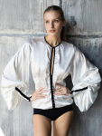 Шикарное боди из эластичной атласной ткани, украшено застежкой из множества бархатных пуговиц. Такую вещь можно надеть как дома, так и на светский раут. Вы произведете фурор!