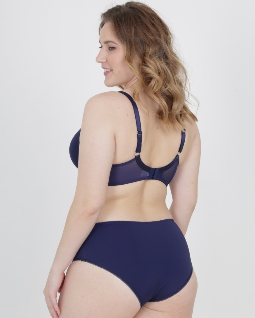 Бюстгальтер с формованной чашкой, на каркасах, из эластичного сетчатого полотна. Пояс усилен упругой пластиной.