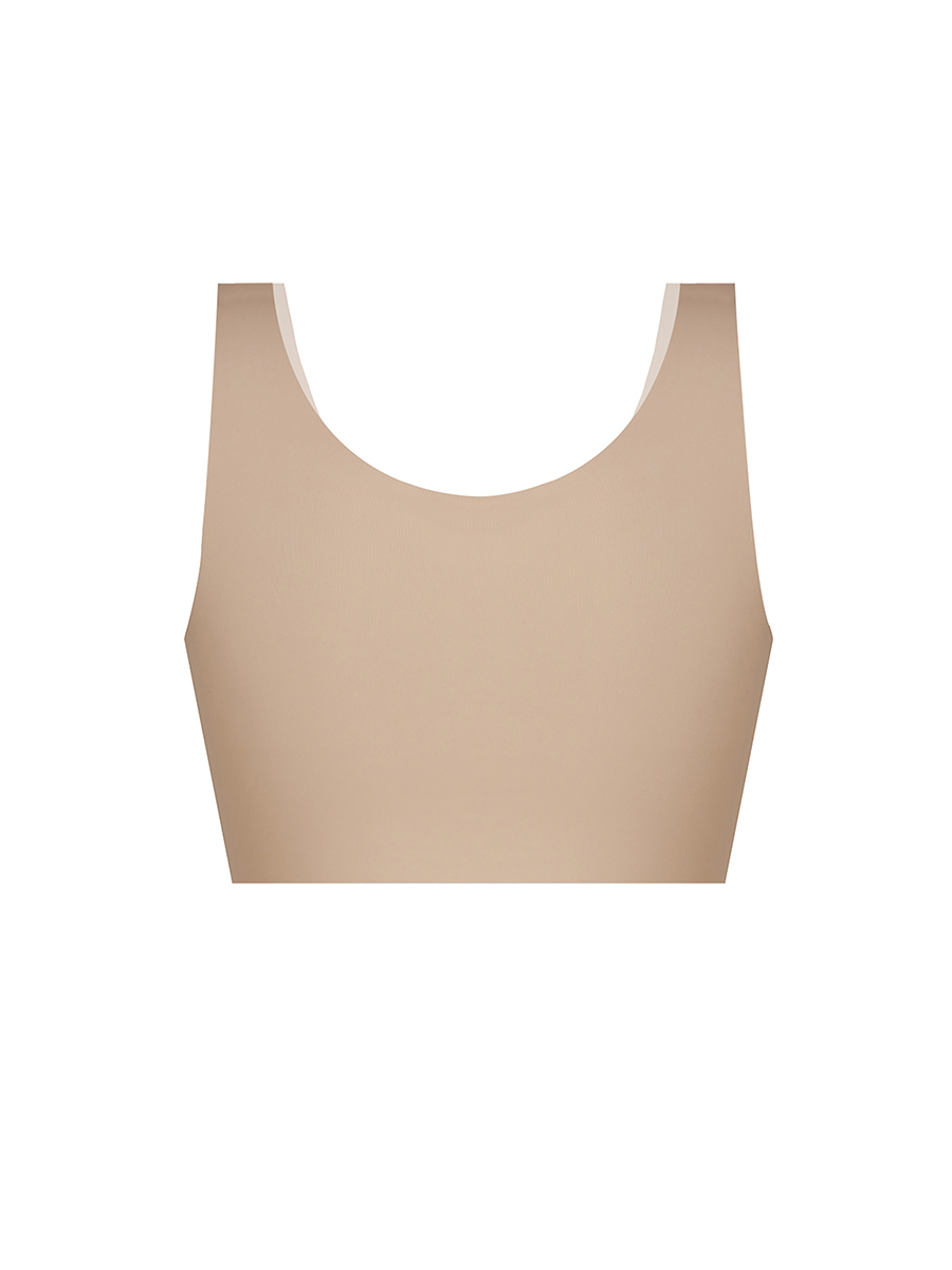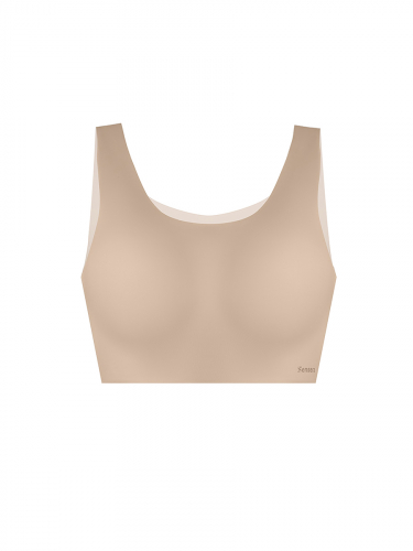 Бесшовный бюстгальтер-топ из тонкого полотна с лазерной обработкой "вторая кожа" . Съемные формованные вкладыши. Без каркасов и боковых корсетных вставок. Широкие бретели не регулируются. Брендированная лента по краю топа , под грудью.