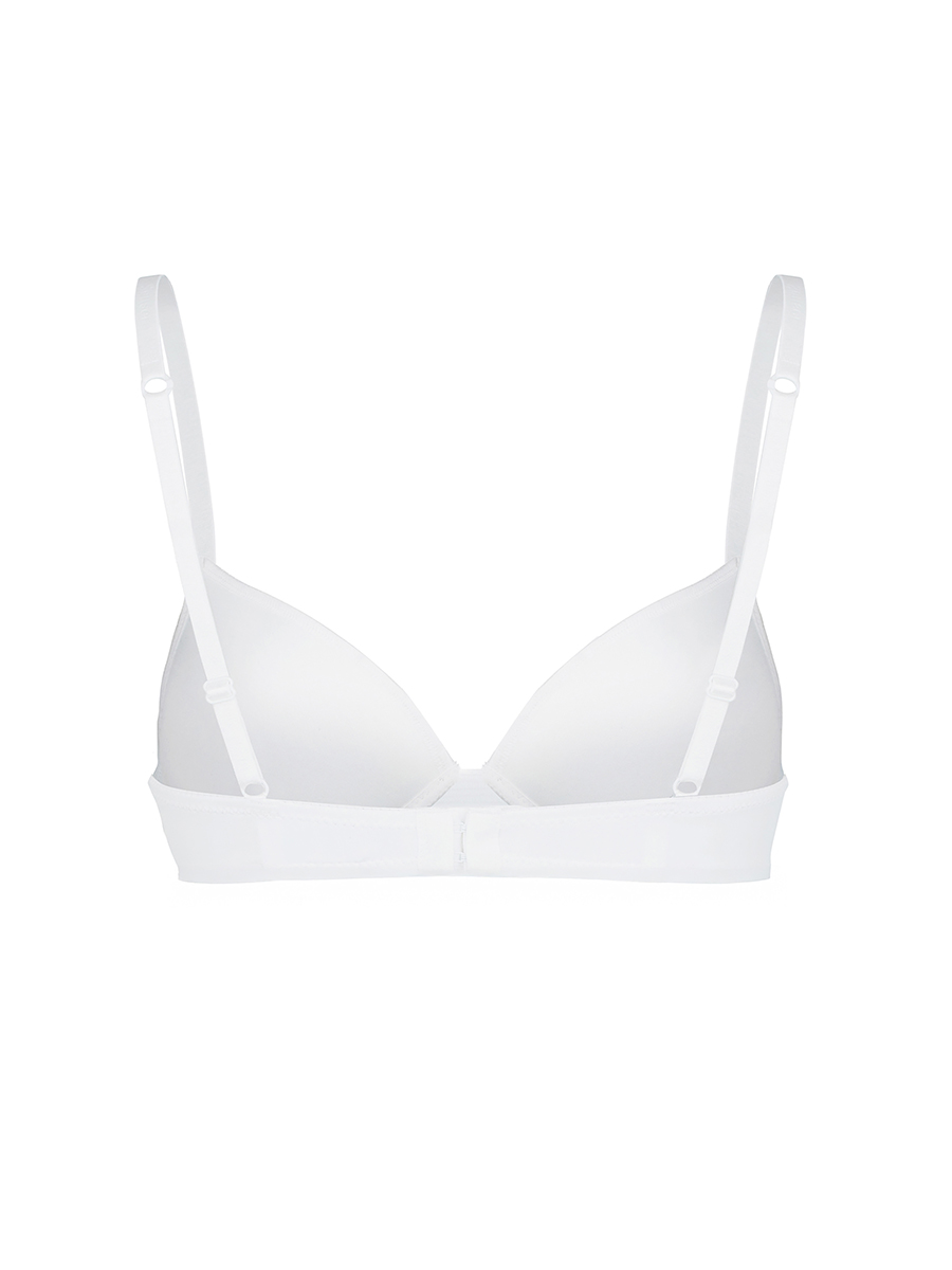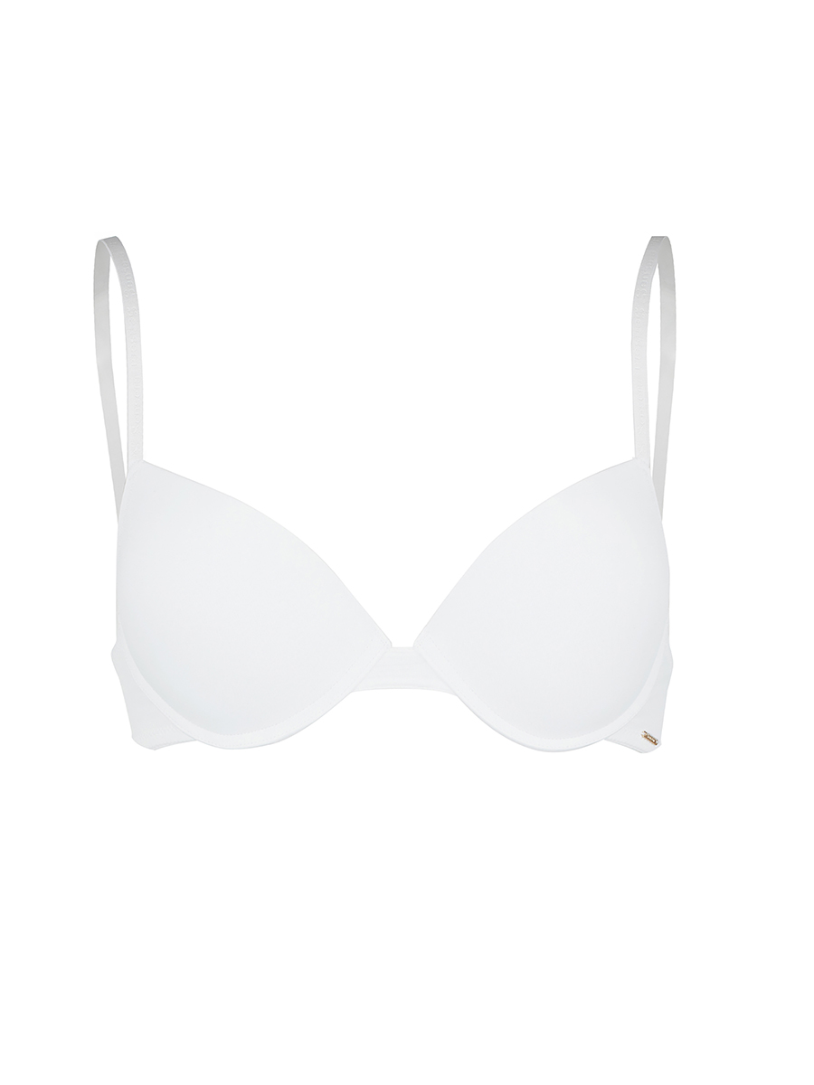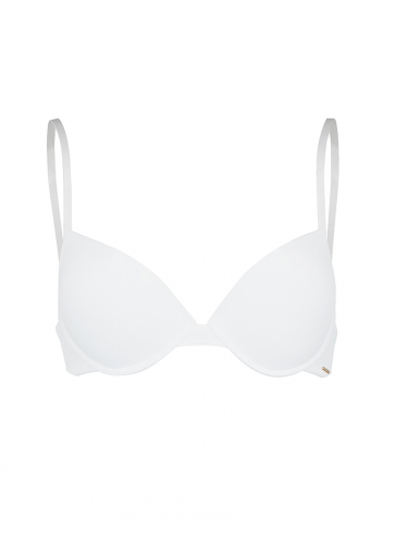 Гладкий базовый бюстгальтер Padded bra с формованными чашками на каркасах, с push-up во всех размерх и боковыми корсетными вставками.. Застежка на 2 крючка и 3 ряда петель.Эластичные бретели можно откорректировать по длине. Металлический крючок для X-фиксации бретелей на спине. Ширина бретелей на объемы 70, 75 и 80 см с чашками А,В,С - 10мм, на объемы 75, 80 с чашками D и размер 85С - 15 мм. Изделие украшают брендированные бретели и металлическая капелька с первой буквой натменования бренда