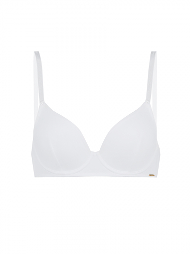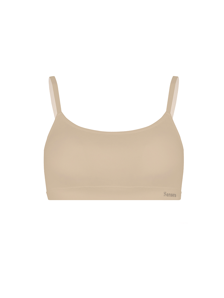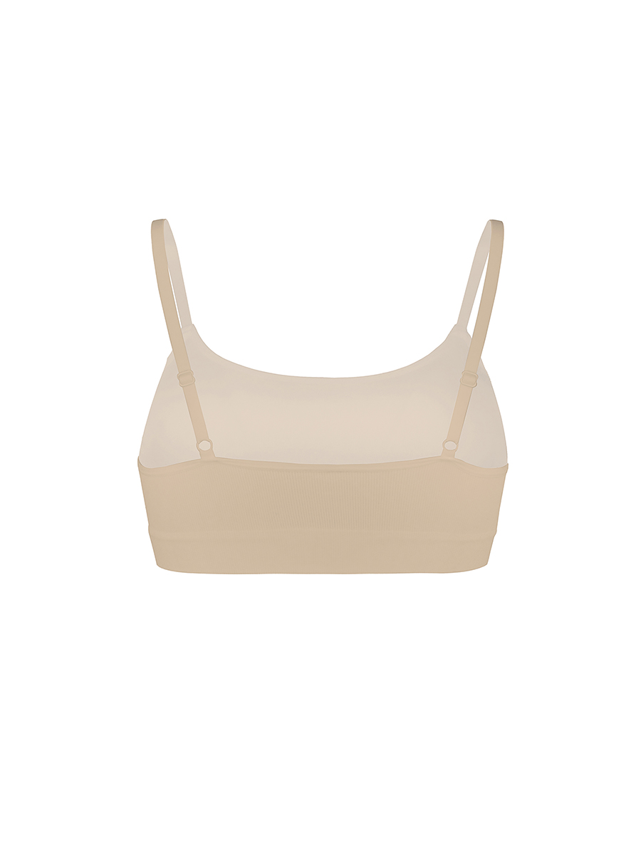 Бюстгальтер-топ из эластичного рибового полотна в вертикальный рубчик с мягким подкладом и съемными вкладышами. Без каркасов и боковых корсетных вставок. Регулируемые не съемные тонкие бретели.. Брендированная лента под грудью.