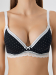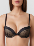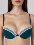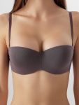 Бюстгальтер пуш-ап с формованными чашками (BC-43) из кулирного полотна, на каркасах 73 типа, на стане. Чашки цельнокроенные с подформовкой из основного полотна, обтачная по верхнему и нижнему срезам . Ластовица на подкладке из монокапрона. Бочки отрезные на подкладке из основного полотна, обтачные по верхнему и нижнему срезам с эластичной тесьмой внутри (жесткая без зуба WTWE1-10, девсел 487W). В бочках пластины. Бретели съемные 10 мм (SWE2, девсел 1879W) с регулировкой по длине. Регуляторы и съемные крючки 10мм. (металл или пластик по заданию).