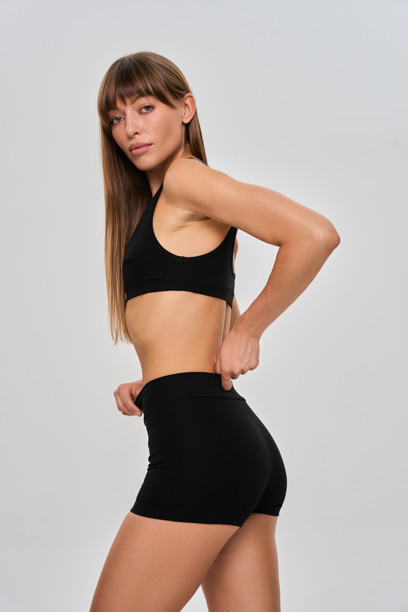 Состоит из бралетта с двойным передом и укороченных велосипедок с широким отрезным поясом.