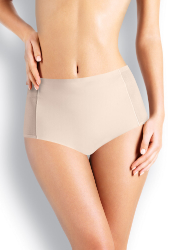 Трусы-бикини женские из полиамида с эластаном. По переду вставки из сетки. Обработка краев - подклееный край. Хлопковая ластовица.
