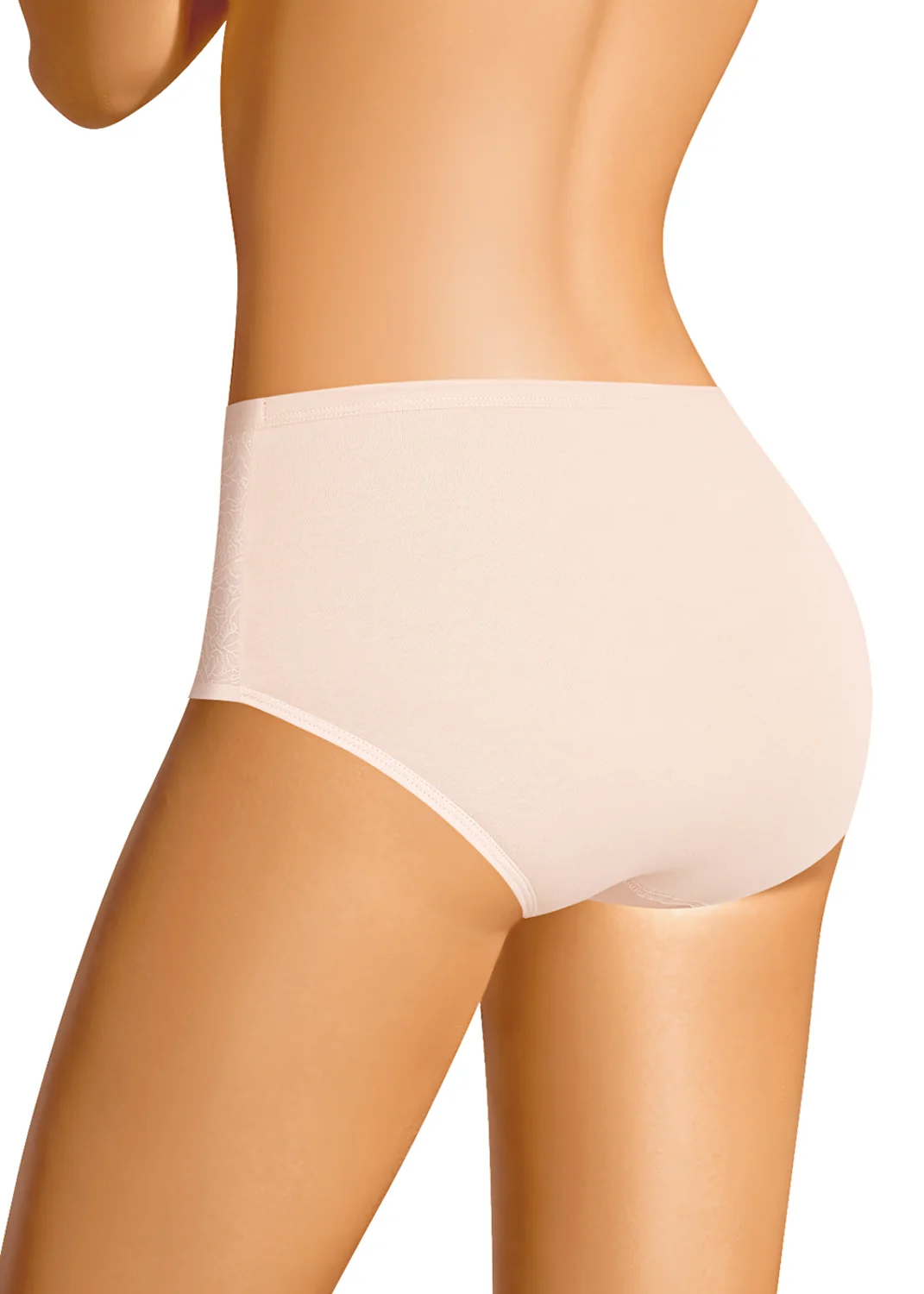 Трусы-макси женские из плотного эластичного хлопкового полотна. Обработка краев - окантовка. По переду дополнительный слой из трикотажного жаккардового полотна. св.бежевый