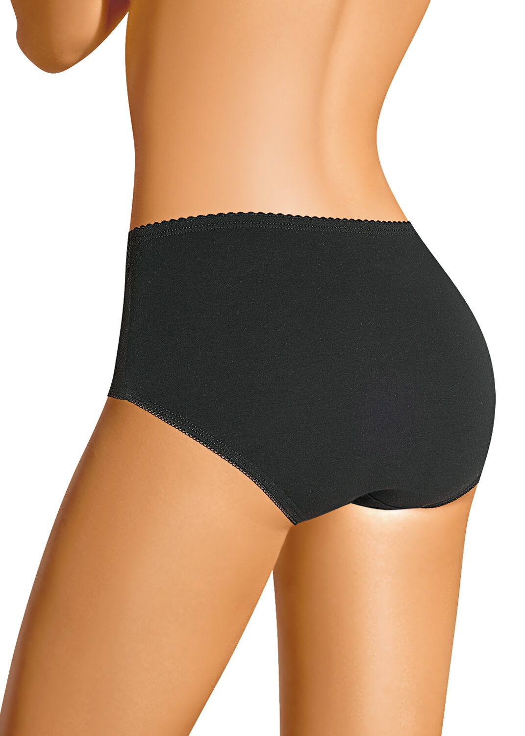 Трусы-макси женские из плотного эластичного хлопкового полотна. Обработка краев - ажурной резинкой с фестоном. По переду вставки из кружева и бант. чёрный