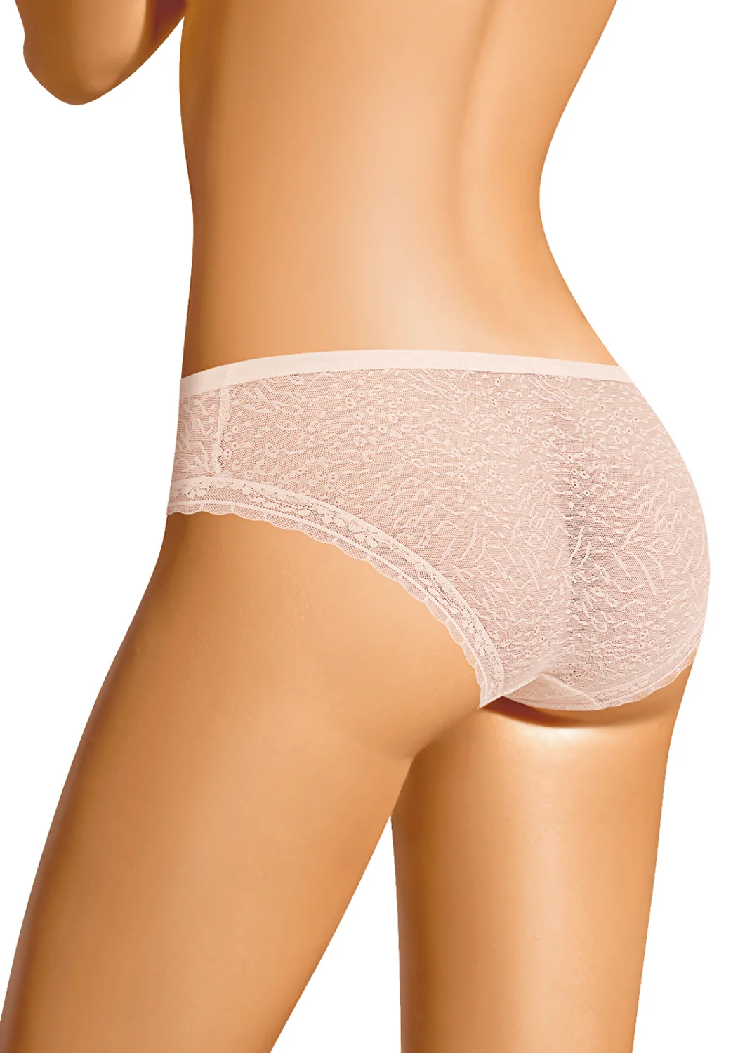Трусы-бикини женские из эластичной сетки. Обработка краев по талии - окантовкой, по ноге - узким кружевом. Хлопковая ластовица. св.бежевый