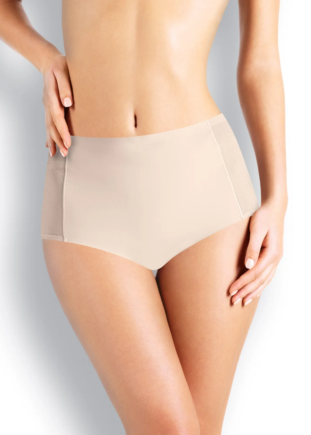 Трусы-макси женские из полиамида с эластаном. По переду вставки из сетки. Обработка краев - подклееный край. Хлопковая ластовица. св.бежевый