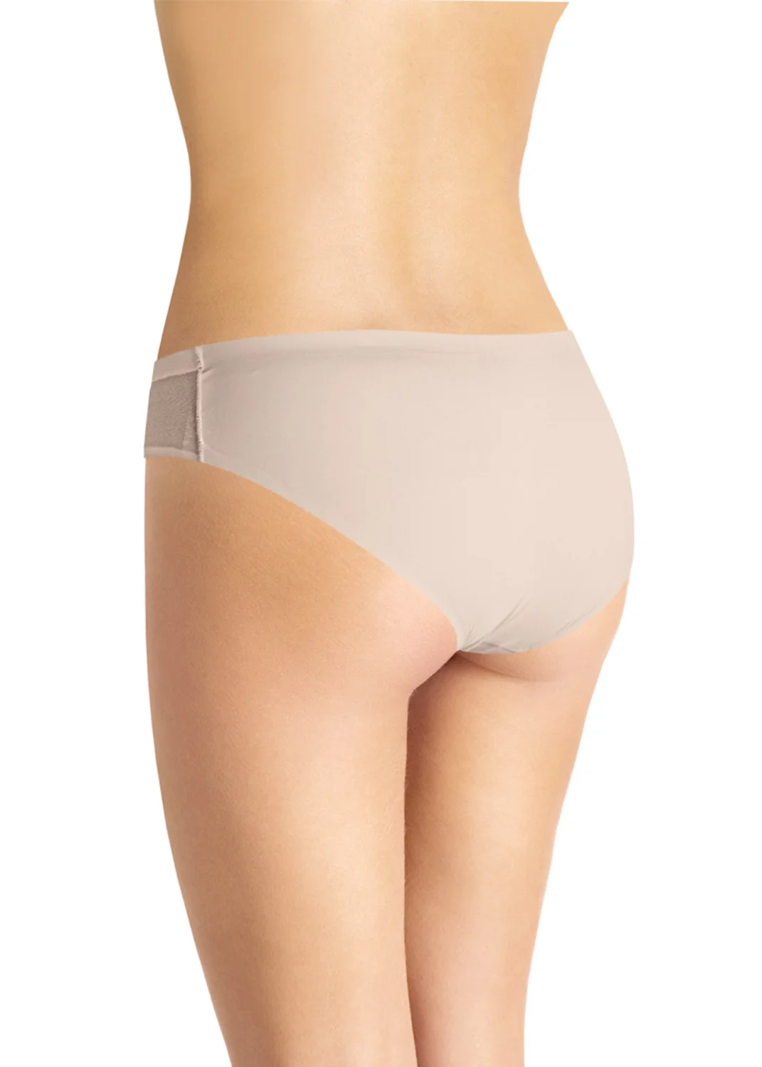 Трусы-бикини женские из полиамида с эластаном. По переду вставки из сетки. Обработка краев - подклееный край. Хлопковая ластовица. св.бежевый