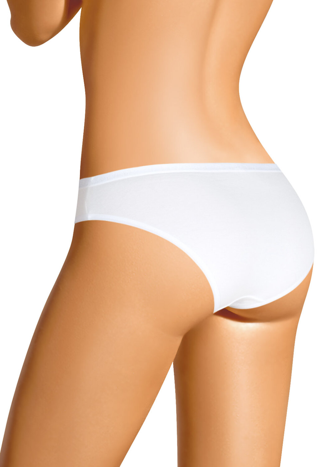 Трусы-бикини женские из эластичного полотна с хлопком и модалом в составе. Обработка по талии - фирменная жаккардовая резинка, по ноге - узкая окантовка. белый