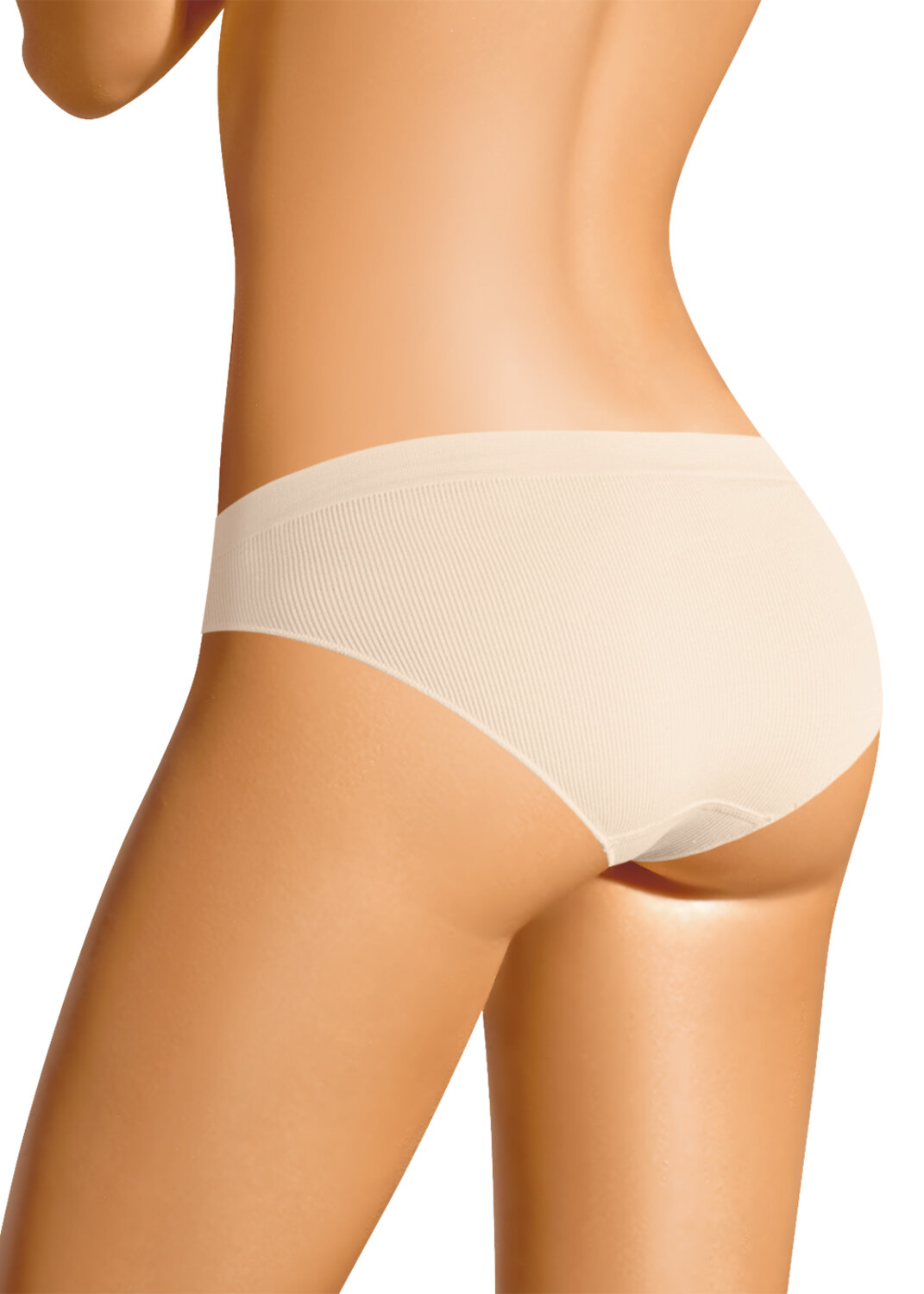 Бесшовные бикини из упругого трикотажного полотна в рубчик, по ножке - внутренняя резинка. Комфортная модель из микрофибры с универсальной посадкой. св.бежевый