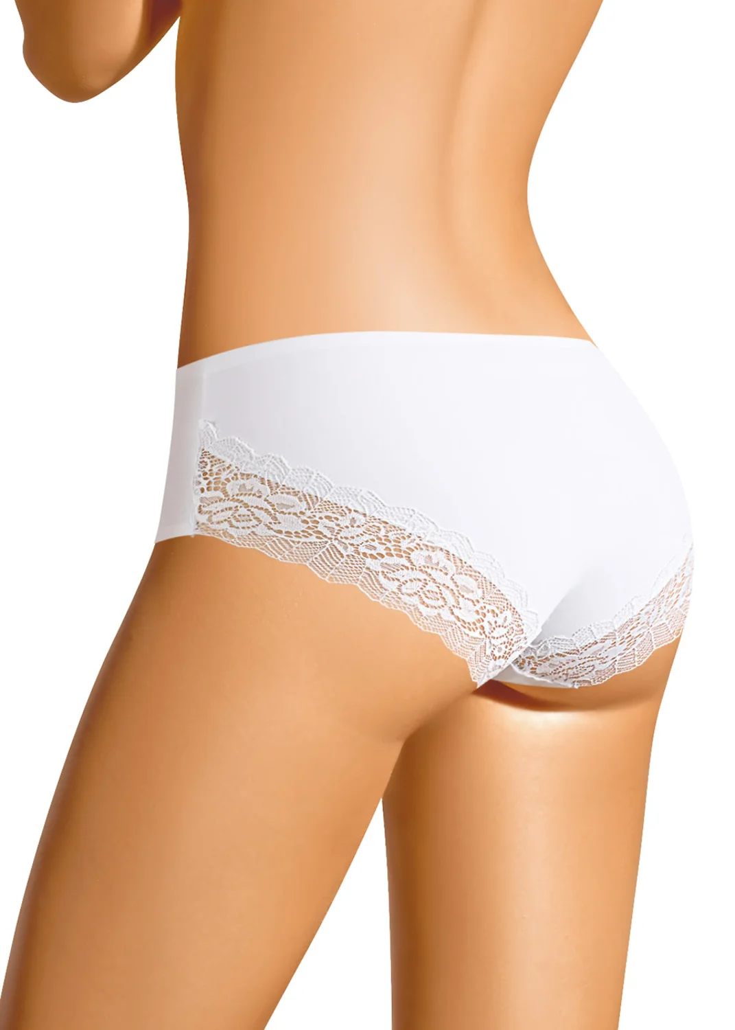 Бесшовные трусы СЛИПЫ комфортной посадки. На детали спинки по ножке идет широкое кружево. белый