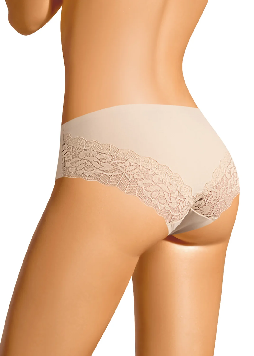 Бесшовные трусы БИКИНИ комфортной посадки. На детали спинки по ножке идет широкое кружево. св.бежевый