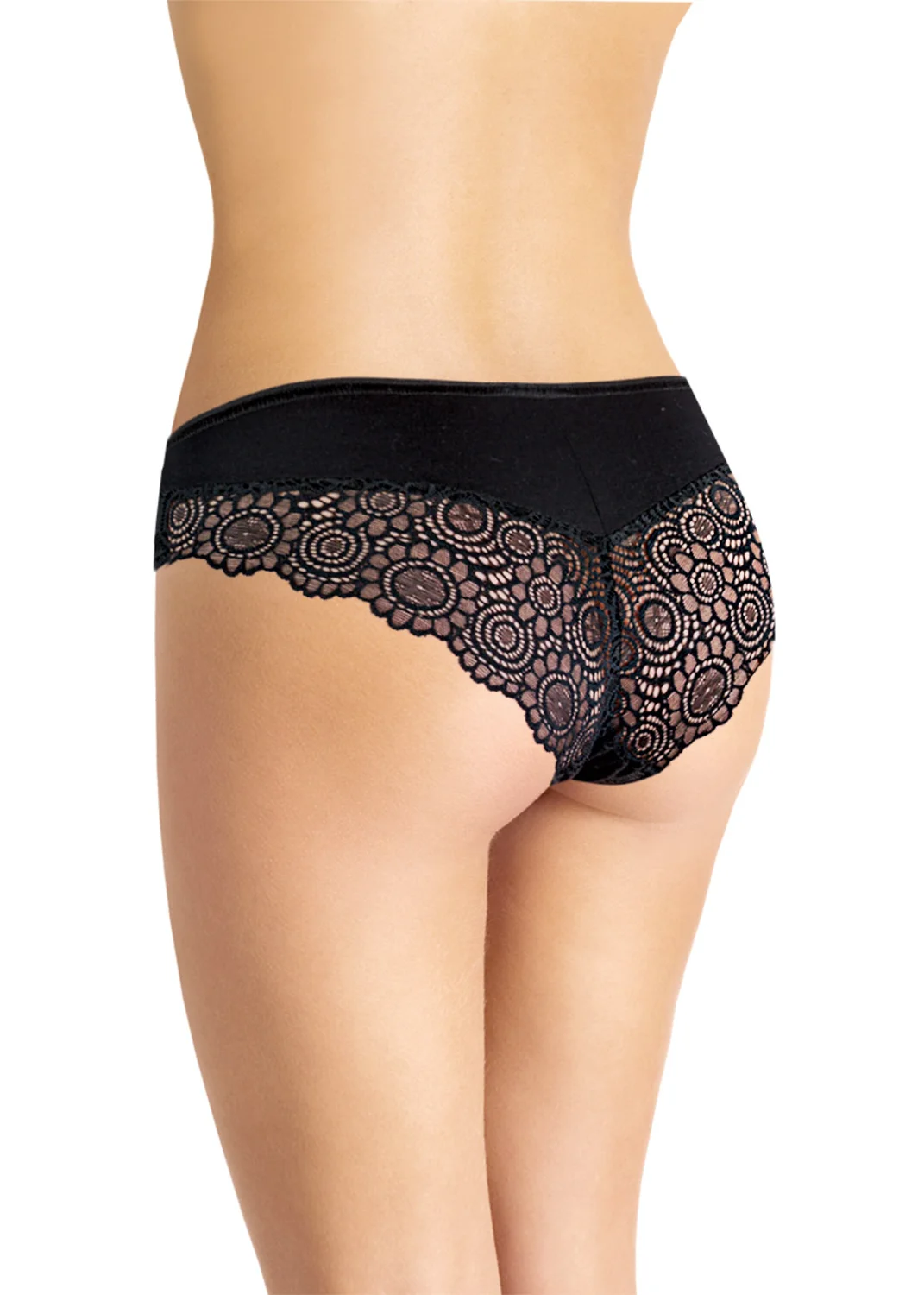 Трусы - комбинированные бикини. Перед из кулирки, спинка из кулирки с кружевной вставкой. По талии и ножке переда полуокантовка. чёрный