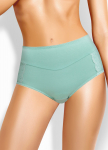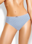 Трусы бикини женские из эластичного хлопкового полотна. Обработка краев по талии окантовочная резинка, по ноге узкая резинка с застилом (сверху). Спереди резы обработка зубы.