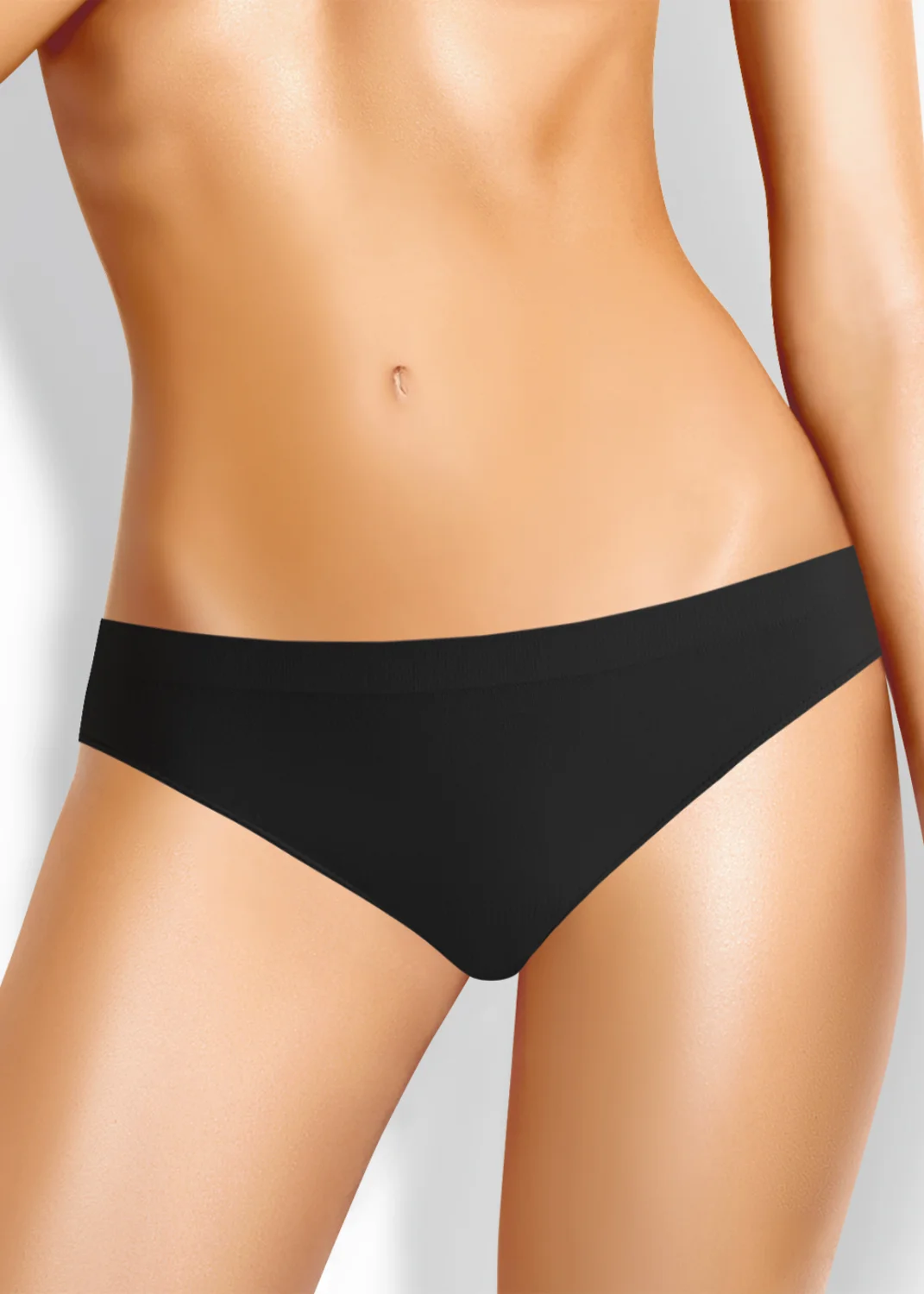 Бесшовные бикини из упругого гладкого трикотажного полотна , по ножке - внутренняя резинка. Комфортная модель из микрофибры с универсальной посадкой. чёрный