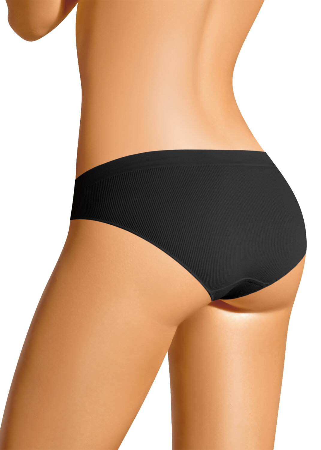 Бесшовные бикини из упругого трикотажного полотна в рубчик, по ножке - внутренняя резинка. Комфортная модель из микрофибры с универсальной посадкой. чёрный