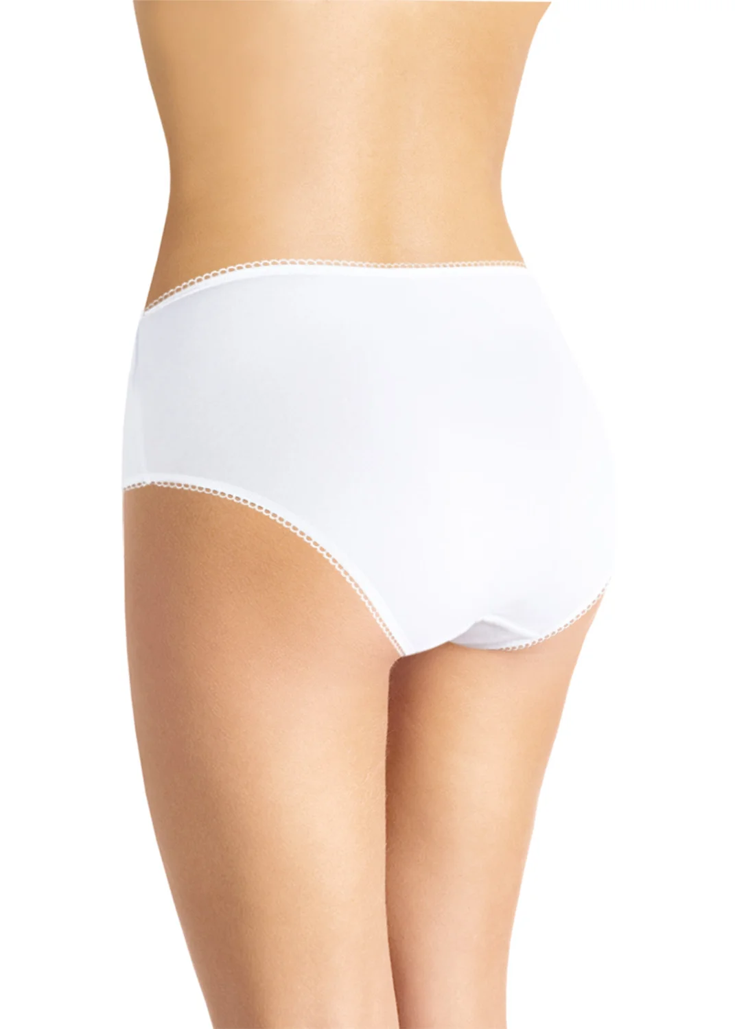 Трусы макси удобной посадки. По ножкам и по поясу выполнены фестоны. Передняя половина трусов с левого бока украшена кружевом в две полосы с небольшим атласным бантиком. белый