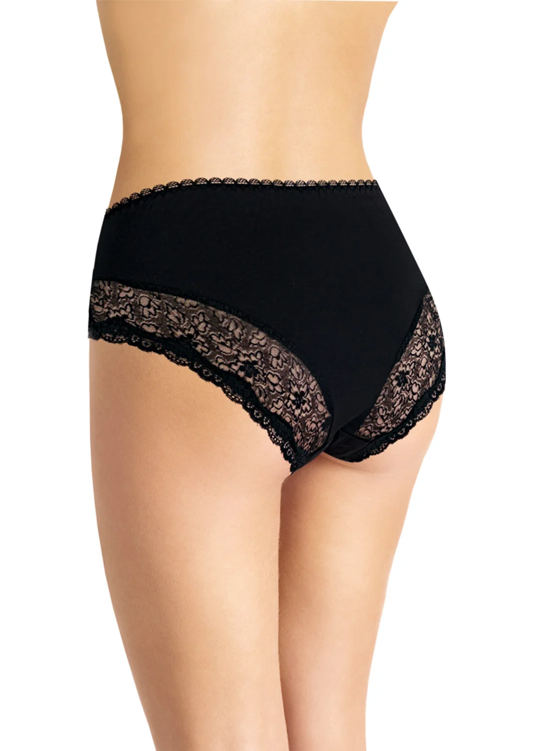 Трусы макси, по талии - ажурная резинка, по ножке - узкое кружево, по спинке и по переду - вставки из кружева. чёрный