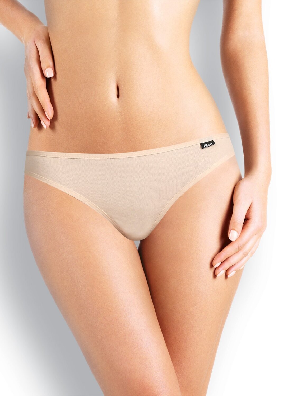 Трусы-стринги женские из эластичного хлопкового полотна. Обработка краев - узкая окантовка. Фирменный жаккардовый логотип. св.бежевый
