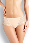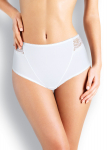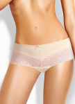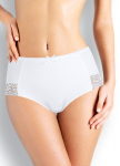 Трусы-стринги женские из эластичного хлопкового полотна. По переду и спинке вставки из кружева. Обработка краев - ажурная резинка с фестоном. Спереди бант.