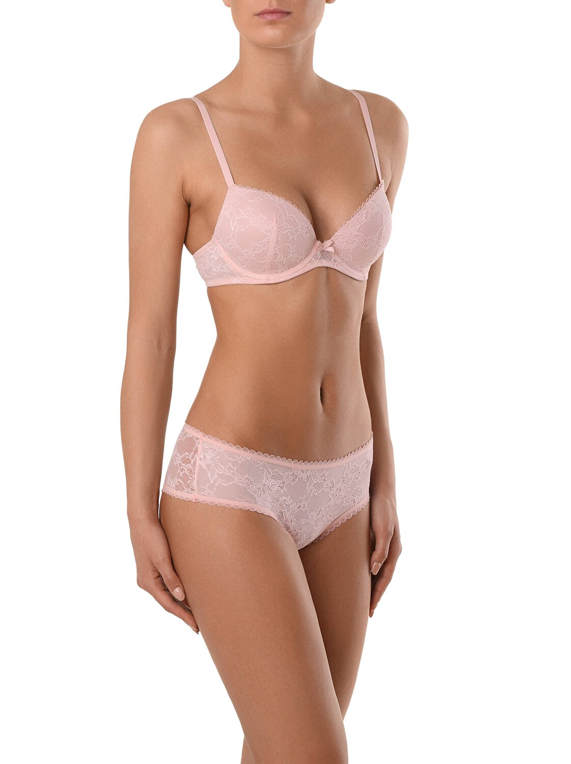Бюстгальтер серии Instinct создан для настоящих ценительниц романтического стиля. Главным элементом в этой композиции стало кружевное полотно с цветочным рисунком. Тесьма с ажурным краем украшает линию декольте и помогает создать соблазнительный силуэт.