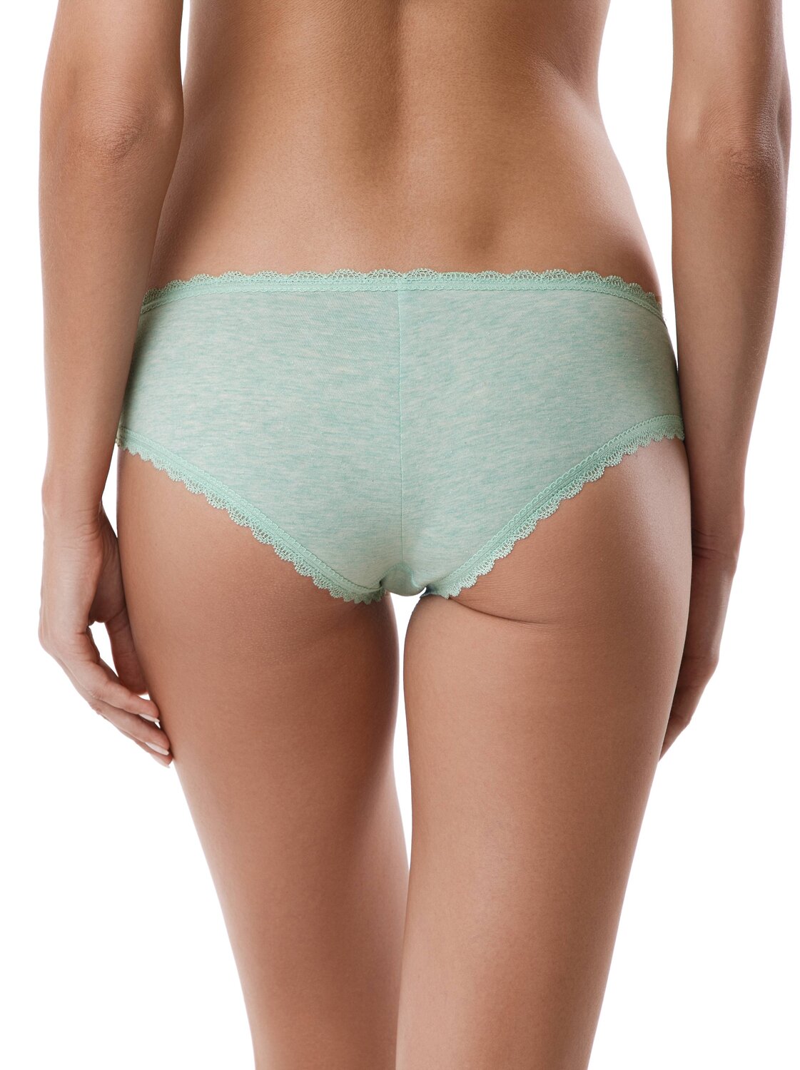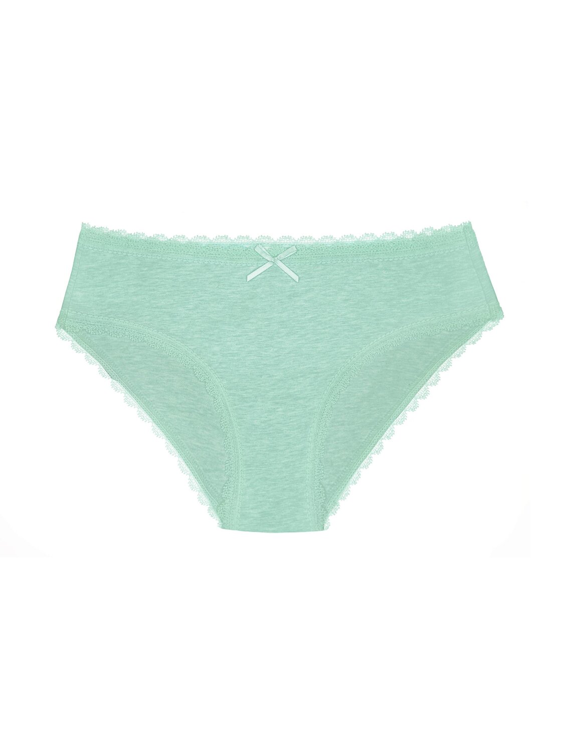Трусики украшены эластичным кружевом, которое не оставляет следов на теле и бережно соприкасается с кожей. Модель дополнена по центру аккуратным бантиком в цвет кружева.