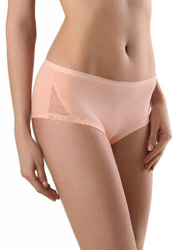 Трусы женские SHORTS со средней посадкой из однотонного трикотажного полотна. Талия обработана эластичной тесьмой плоским швом. Ножки обработаны швом вподгибку. По переду изделия по бокам вставки из трикотажного полотна "сетка". pink