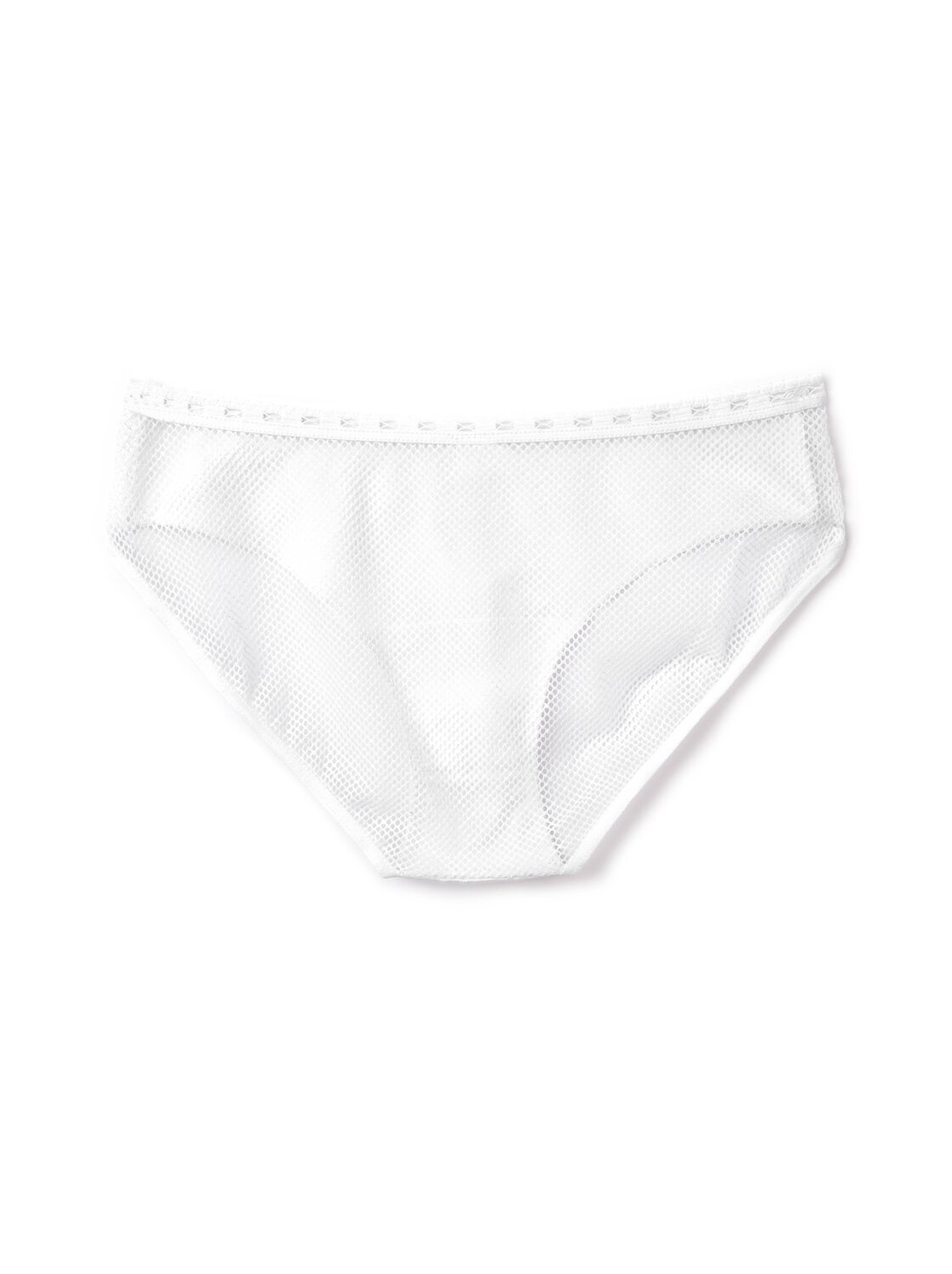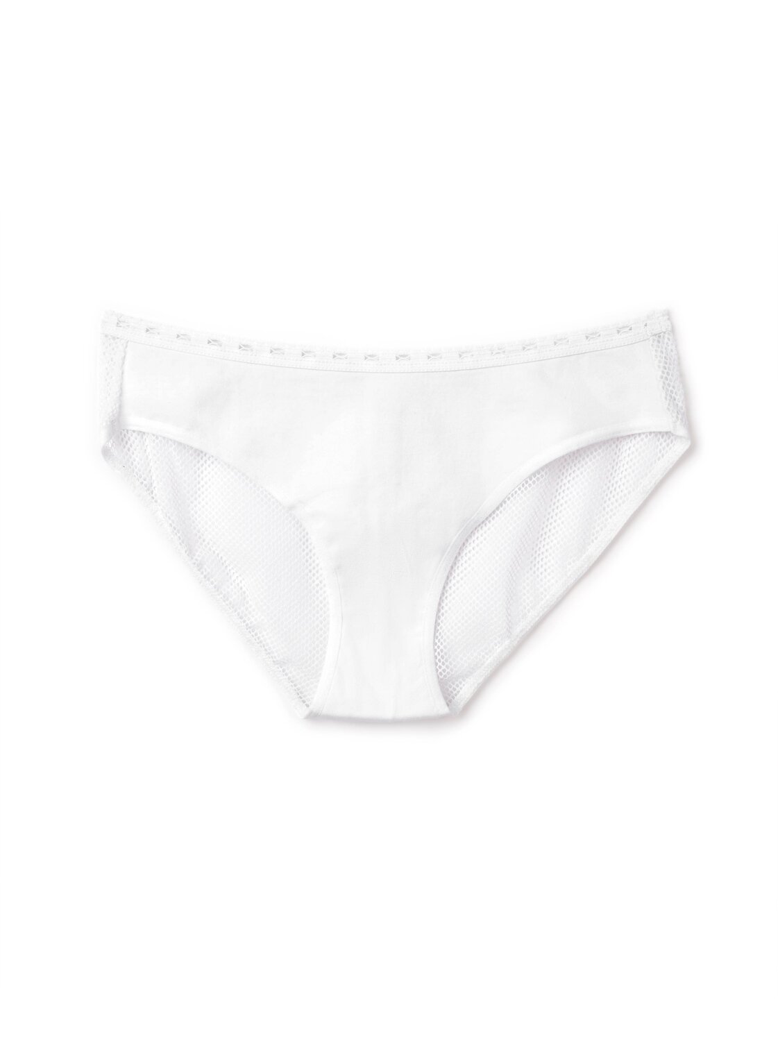 Материал передней части - практичный, приятный к телу "дышащий" трикотаж с высоким содержанием натурального хлопка. Задняя часть трусиков выполнена из трендового полотна "сетка". Благодаря такому дизайнерскому решению трусики великолепно сидят на любой фигуре, подчеркивая соблазнительные формы. white
