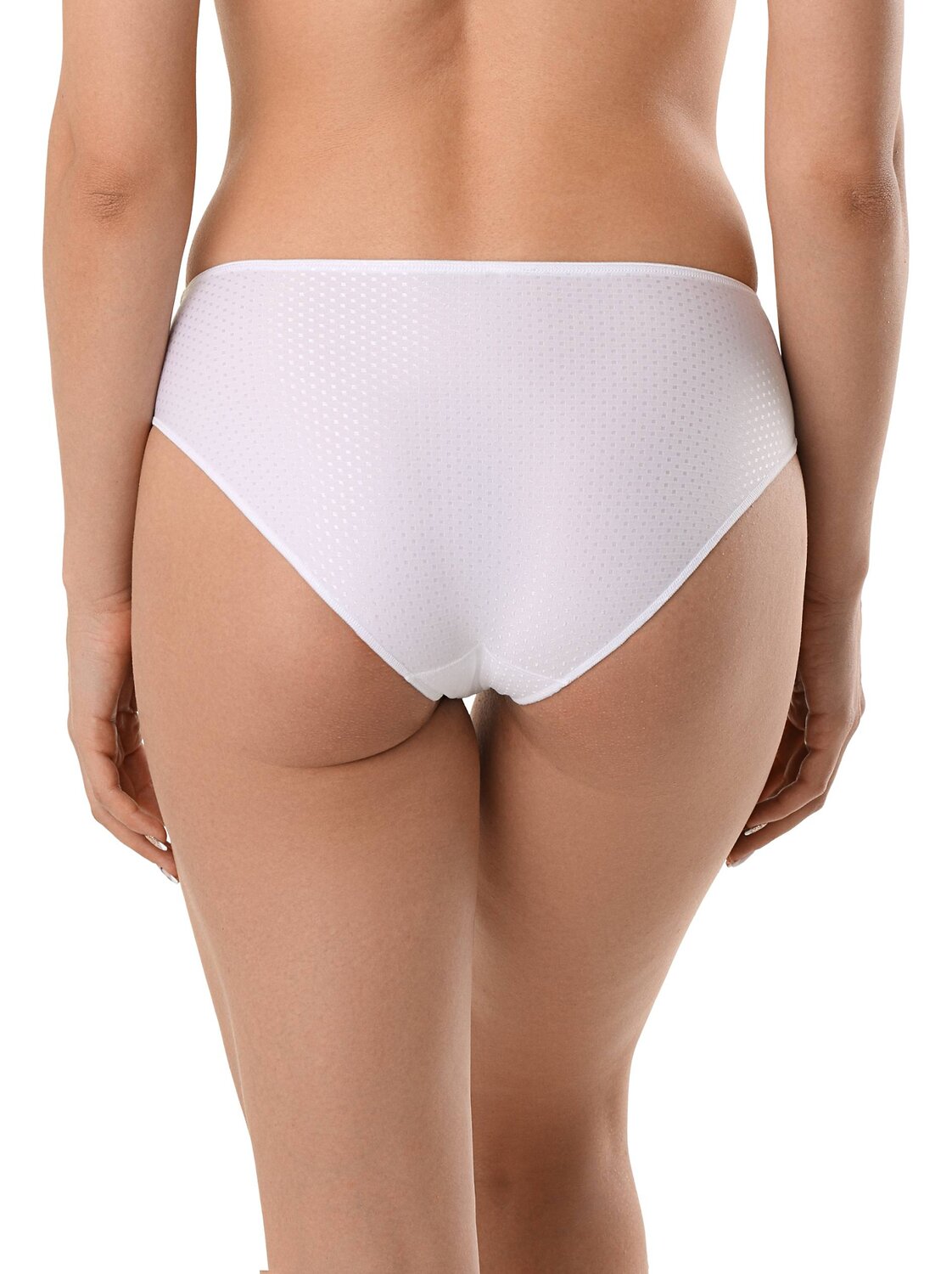 Трусики "слип" VOYAGE отличаются чистотой линий и исключительным комфортом. Выполненные из полотна с деликатным жаккардовым рисунком «в горошек» и украшенные аппликацией макраме, трусики помогут создать одновременно простой и утонченный образ.