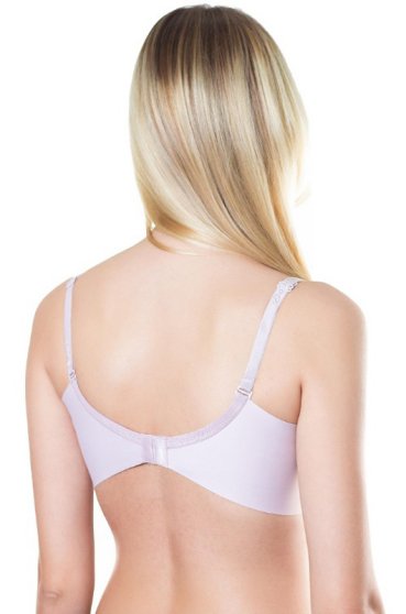 Оптовая продажа. Бюстгальтер с формованными чашками и фигурным "пуш-ап", выполненный из гладкой микрофибры, стан по бокам с бесшовным обрезным краем, на чашках ажурные вставки по верхнему краю, декоративная подвеска в центре, съёмные регулируемые бретели.