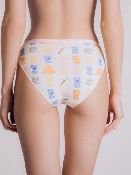 Оптовая продажа. Трусики - слипы из хлопка в белом цвете на мягкой плоской резинке. Классическая посадка по линии талии, по линии ножки шов оверлоком. По всему полотну изделия цветной принт с изображением детских игрушек..