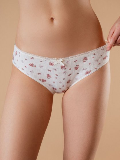 Оптовая продажа. Трусики слипы женские из высококачественного трикотажного полотна, с цветочным рисунком по всему полотну. Ткань выполнена с отверстиями. Имеют среднюю посадку, мягкую и эластичную тонкую резинку по талии, украшенную кружевом, удерживающие трусы во время носки. Модель выполнена в белом цвете. Гигиеничная хлопковая ластовица позволяет избежать трения и раздражения кожи. Удобная и комфортная модель для повседневного белья. Рекомендуется бережная стирка при 30С.