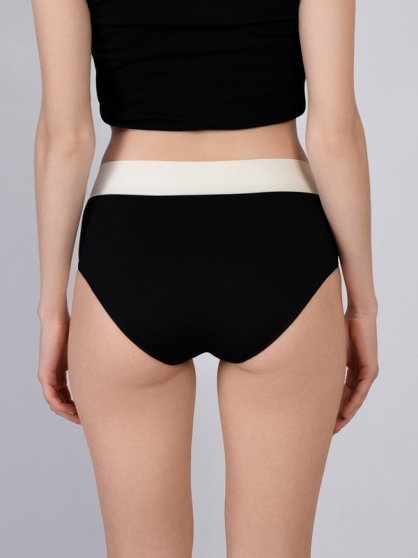 Оптовая продажа. Трусики слипы женские черного цвета из прочного полиамидного полотна, со средней линией талии, комфортной широкой резинкой по талии бежевого цвета, без декоративных элементов. Гигиеничная хлопковая ластовица позволяет избежать трения и раздражения кожи. Тактильно приятные на ощупь подходят даже для самой чувствительной кожи. Удобная и комфортная модель для повседневного нижнего белья. Они легко стираются и сохраняют свою форму даже после многократных стирок. Рекомендуется бережная стирка при 30С.