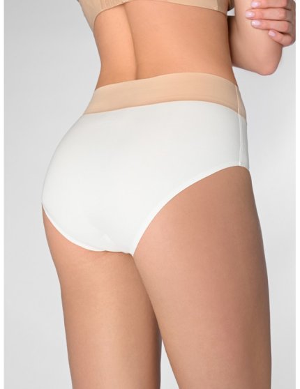 Оптовая продажа. Трусики слипы женские белого цвета из прочного полиамидного полотна, со средней линией талии, комфортной широкой резинкой по талии бежевого цвета, без декоративных элементов. Гигиеничная хлопковая ластовица позволяет избежать трения и раздражения кожи. Тактильно приятные на ощупь подходят даже для самой чувствительной кожи. Удобная и комфортная модель для повседневного нижнего белья. Они легко стираются и сохраняют свою форму даже после многократных стирок. Рекомендуется бережная стирка при 30С.