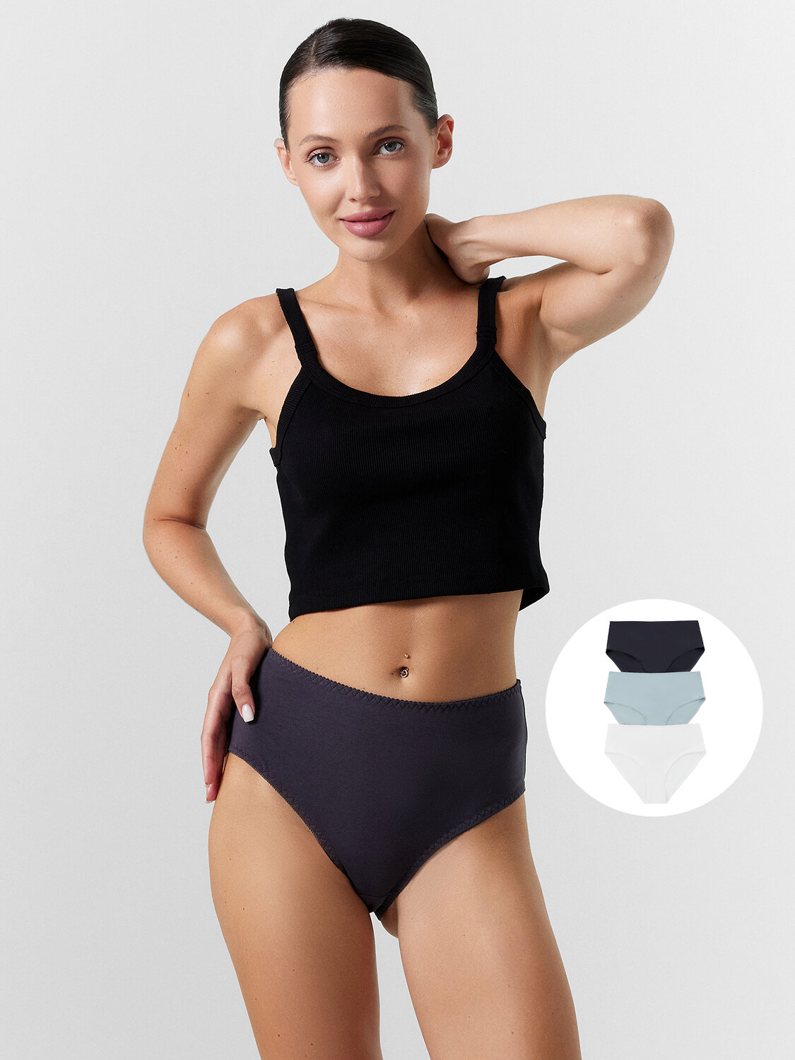 Набор (мультипак) из трех пар женских трусов из высококачественного хлопка. Универсальная и максимально удобная модель с высокой посадкой. Натуральный материал высочайшего качества: мягкий, дышащий, гипоаллергенный и долговечный, сохраняет вид даже после многочисленных стирок и обеспечивает чувство полного комфорта на протяжении всего дня. Трусы макси женские благодаря продуманной анатомической конструкции, плоским швам и деликатным резиночкам, отлично подходят для повседневной носки и занятий спортом. В линейке нижнего белья от Mark Formelle вы всегда сможете найти самые разнообразные женские трусики на свой вкус. Рекомендуем!
