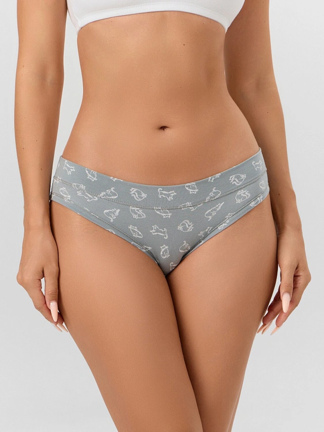 Набор женских трусиков слипов (3 шт.) разных цветов из высококачественного хлопка. Трусы женские слипы хлопковые или, как их еще называют, слип-бикини — это популярная модель женского белья. Невероятно удобные, благодаря своей невысокой посадке, они пользуются заслуженной любовью покупательниц. Изготовлены из натурального материала — дышащего, мягкого, гипоаллергенного. Помимо длительного и полного ощущения комфорта, материал отличается долговечностью. Продуманная анатомическая конструкция, плоские швы и деликатные резиночки делают эту модель подходящей для занятий спортом. Пригодятся и будущим мамам: низкая талия трусиков удобно помещается под растущим животиком и абсолютно не давит. Рекомендуем! котики на сером