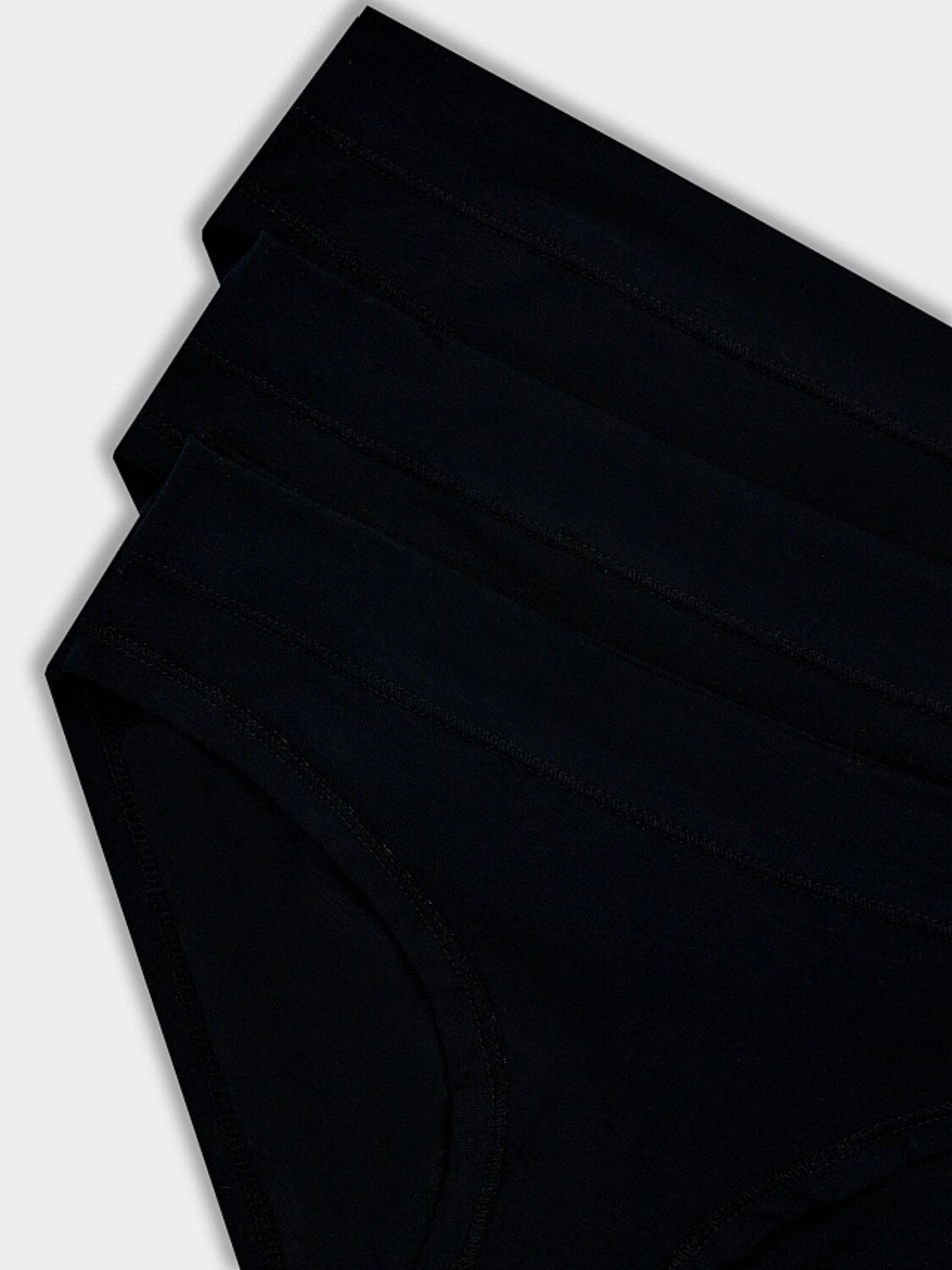 Набор женских трусиков слипов (3 шт.) разных цветов из высококачественного хлопка. Трусы женские слипы хлопковые или, как их еще называют, слип-бикини — это популярная модель женского белья. Невероятно удобные, благодаря своей невысокой посадке, они пользуются заслуженной любовью покупательниц. Изготовлены из натурального материала — дышащего, мягкого, гипоаллергенного. Помимо длительного и полного ощущения комфорта, материал отличается долговечностью. Продуманная анатомическая конструкция, плоские швы и деликатные резиночки делают эту модель подходящей для занятий спортом. Пригодятся и будущим мамам: низкая талия трусиков удобно помещается под растущим животиком и абсолютно не давит. Рекомендуем! черный