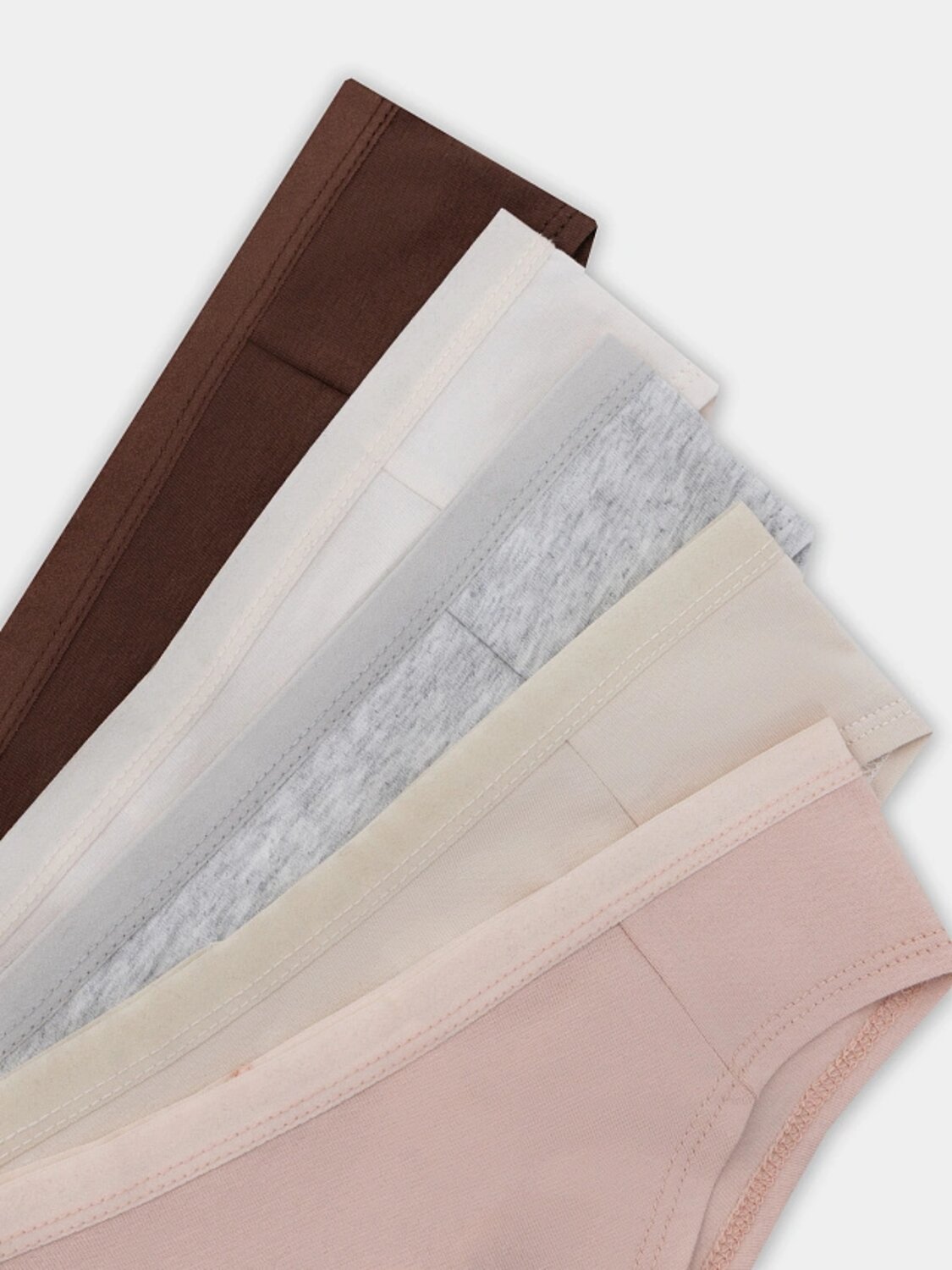 Набор из пяти трусиков-бразилиан — основа практичного и комфортного гардероба. Модель из мягкого хлопка с добавлением эластана обеспечивает удобство в течение всего дня. Благодаря заниженной линии талии и тонкой эластичной тесьме трусики обеспечивают удобную посадку, которая не давит и не врезается.