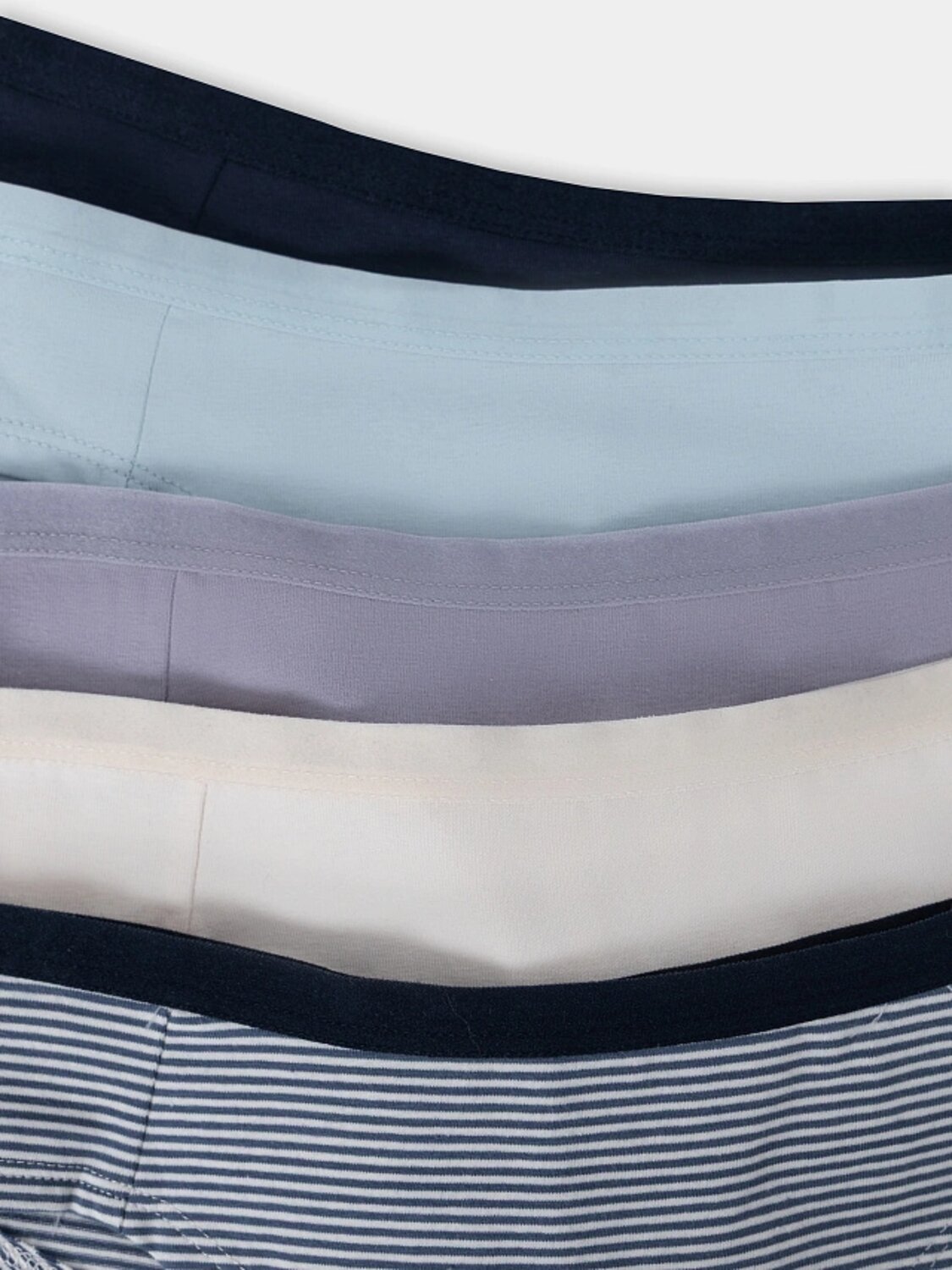 Мультипак (5 штук) хлопковых трусиков-бразилиана из натурального, гипоаллергенного, дышащего полотна. Линия талии занижена. На верхнем срезе – тонкая эластичная тесьма, по ножкам – шов вподгибку. Почти не заметны под одеждой!