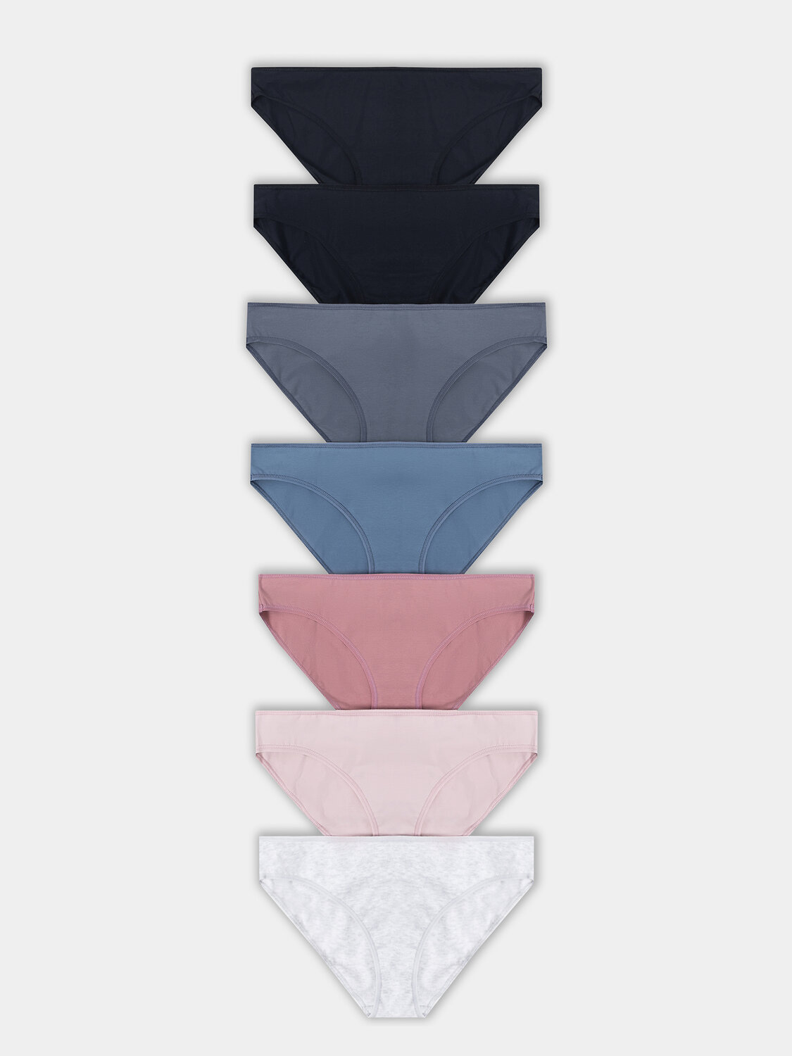 Мультипак (5 штук) слип-бикини из хлопкового полотна – гипоаллергенного и приятного на ощупь. Линия талии занижена. На верхнем срезе трусиков и по ножкам – эластичная тесьма. Наиболее классическая конструкция среди слип-бикини. Идеальный комфорт. Эта модель – прекрасный выбор для повседневной носки!