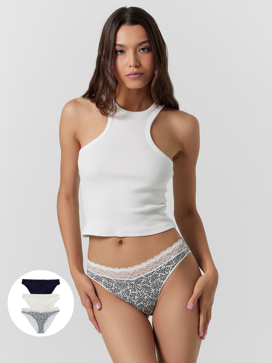 Набор женских трусиков (3 шт.) в разных цветах из высококачественного хлопка с кружевными деталями. Прелестные трусики-бикини, особая конструкция которых оригинальным образом сочетает трусики трех гармоничных расцветок. Заниженная линия талии позволяет носить одежду с посадкой на бедрах, а довольно глубокие вырезы по бокам визуально делают ноги длиннее и подчеркивают стройность и грациозность фигуры. Изюминка модели - кружевные детали, которые придают образу особый шарм и очарование. Трусы женские слипы хлопковые или, как их еще называют, слип-бикини - популярная модель женского белья. Продуманная анатомичная конструкция, плоские швы и деликатные резиночки делают эту модель подходящей для занятий спортом, можно использовать её как спортивное бельё, а также как ночные трусики для сна. Пригодятся трусы-бикини и будущим мамам: низкая талия изделия удобно помещается под растущим животиком и абсолютно не давит. Благодаря широкому размерному и цветовому ряду, в линейке Mark Formelle вы обязательно найдете модель белья с удобной посадкой по своему вкусу!