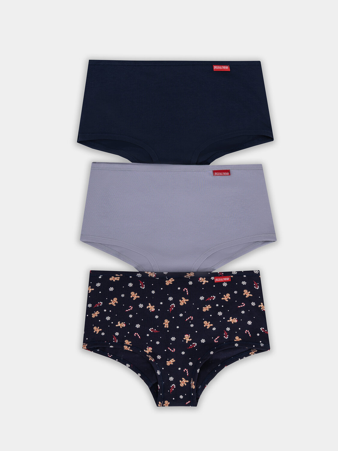 Набор из трех женских трусов-шорт — это практичное решение для повседневного комфорта и разнообразия в гардеробе. Каждая модель классического кроя обеспечивает удобную посадку и полную свободу движений в течение всего дня.