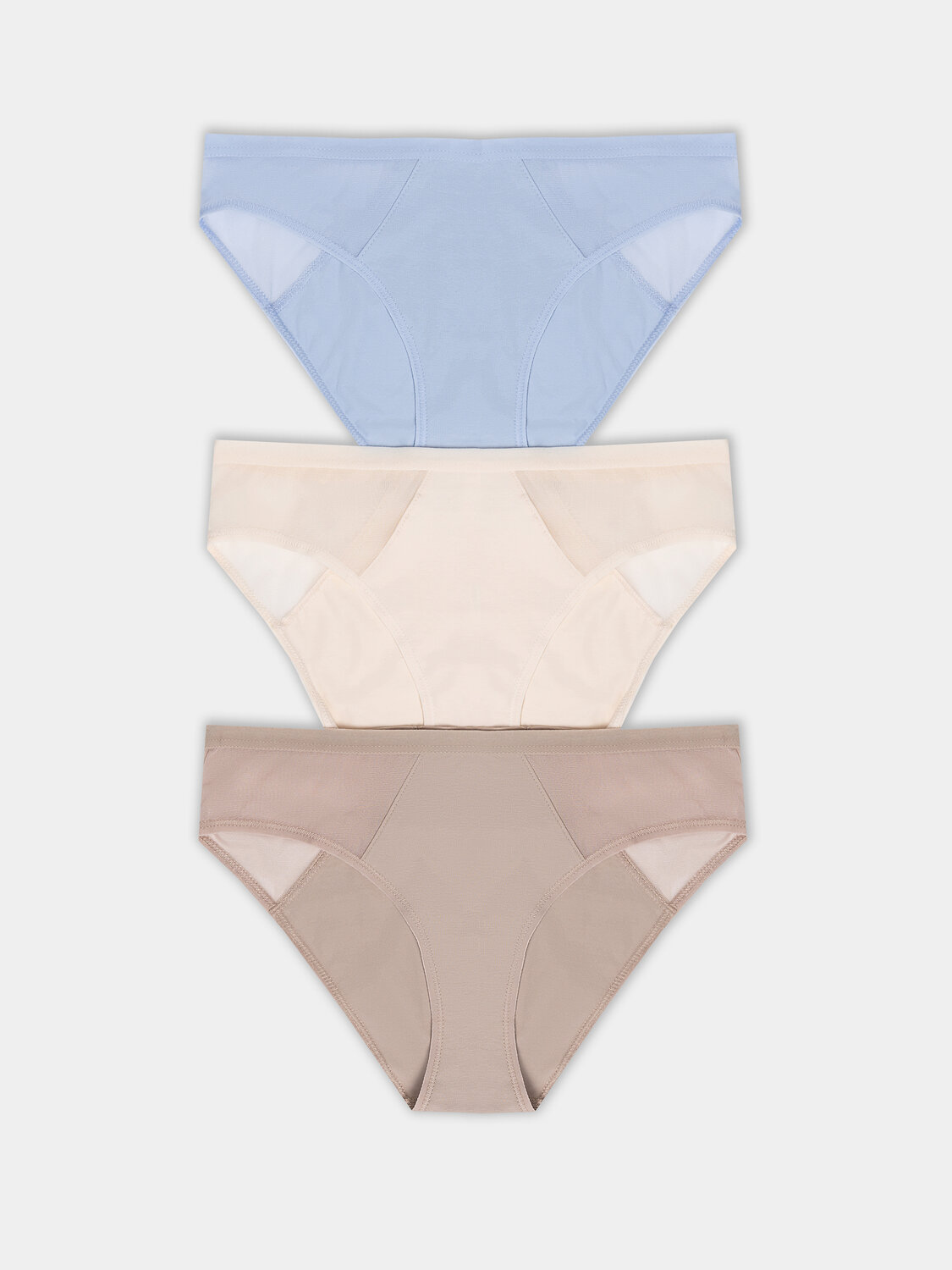 Набор из трёх пар станет практичным решением для тех, кто ценит удобство и элегантность в деталях. Нежные оттенки и продуманный крой делают эти трусики идеальным базовым бельём на каждый день.