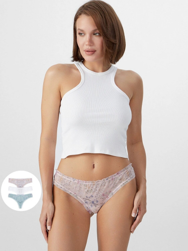 Набор женских трусиков-бразилиана — изысканное сочетание утонченного дизайна и комфорта на каждый день. Средняя линия талии подчеркивает естественные линии фигуры, создавая деликатный и соблазнительный силуэт. Изделия выполнены из тонкой, приятной к телу сеточки, которая мягко прилегает, обеспечивая легкость и воздушность без потери уюта. Хлопковая подкладка в зоне ластовицы обеспечивает надежную защиту и гигиеничность, что особенно важно для чувствительной кожи. Рюши по верхнему срезу и по краям ножек добавляют образу романтичности, играя на контрасте с прозрачной фактурой материала и подчеркивая женственность. Этот набор станет стильным решением для повседневной носки или особых случаев, когда важны уверенность, комфорт и эстетика. Отлично сочетаются с базовыми бюстгальтерами или кружевным верхом — выбор, который легко адаптируется под настроение и образ.