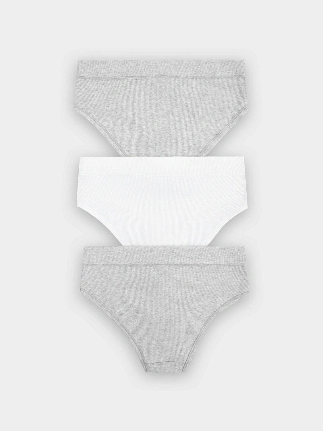 Трусы женские, средняя линия талии, силуэт - слипы. Передняя и задняя детали выполнены из рибаны. Верхний срез трусов обработан бейкой поперечной из рибаны, внутри жилка 6мм. Нижние срезы обработаны бейками поперечными из рибаны. Подкладка ластовицы из хлопка, отлетная по верхнему срезу. белый10
