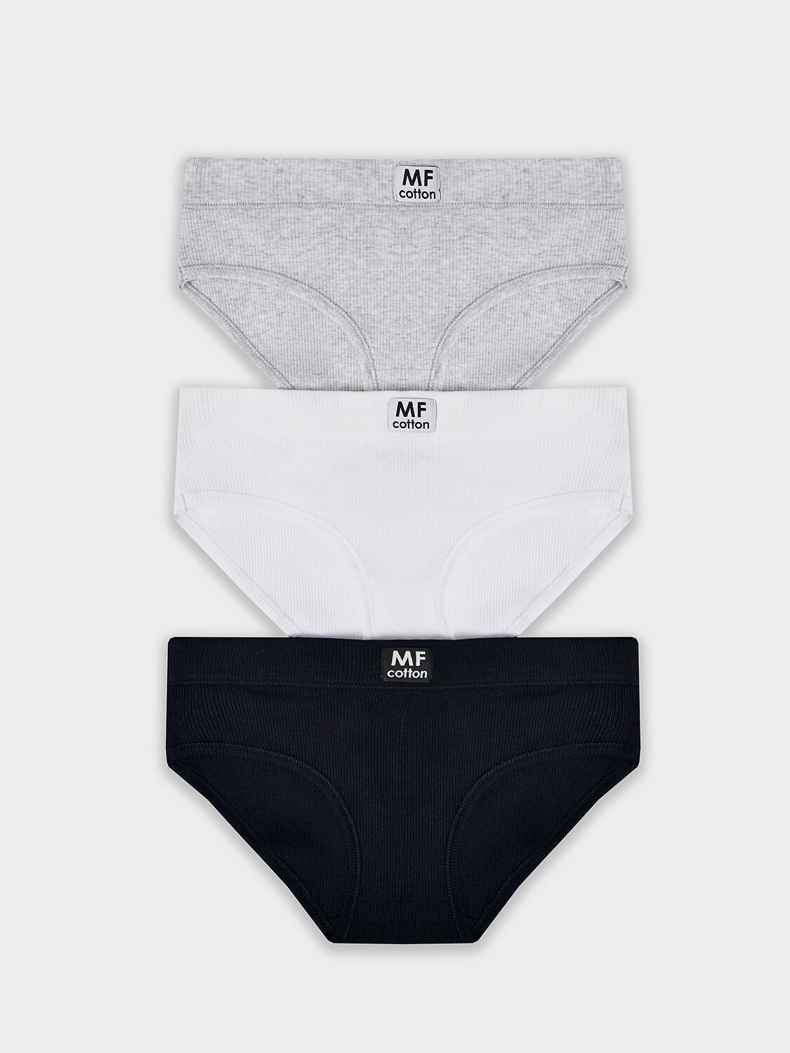 Набор из трех слипов — это воплощение повседневного комфорта и лаконичного стиля. Модели со средней линией талии из мягкой рибаны обеспечивают удобное облегание и естественную поддержку.