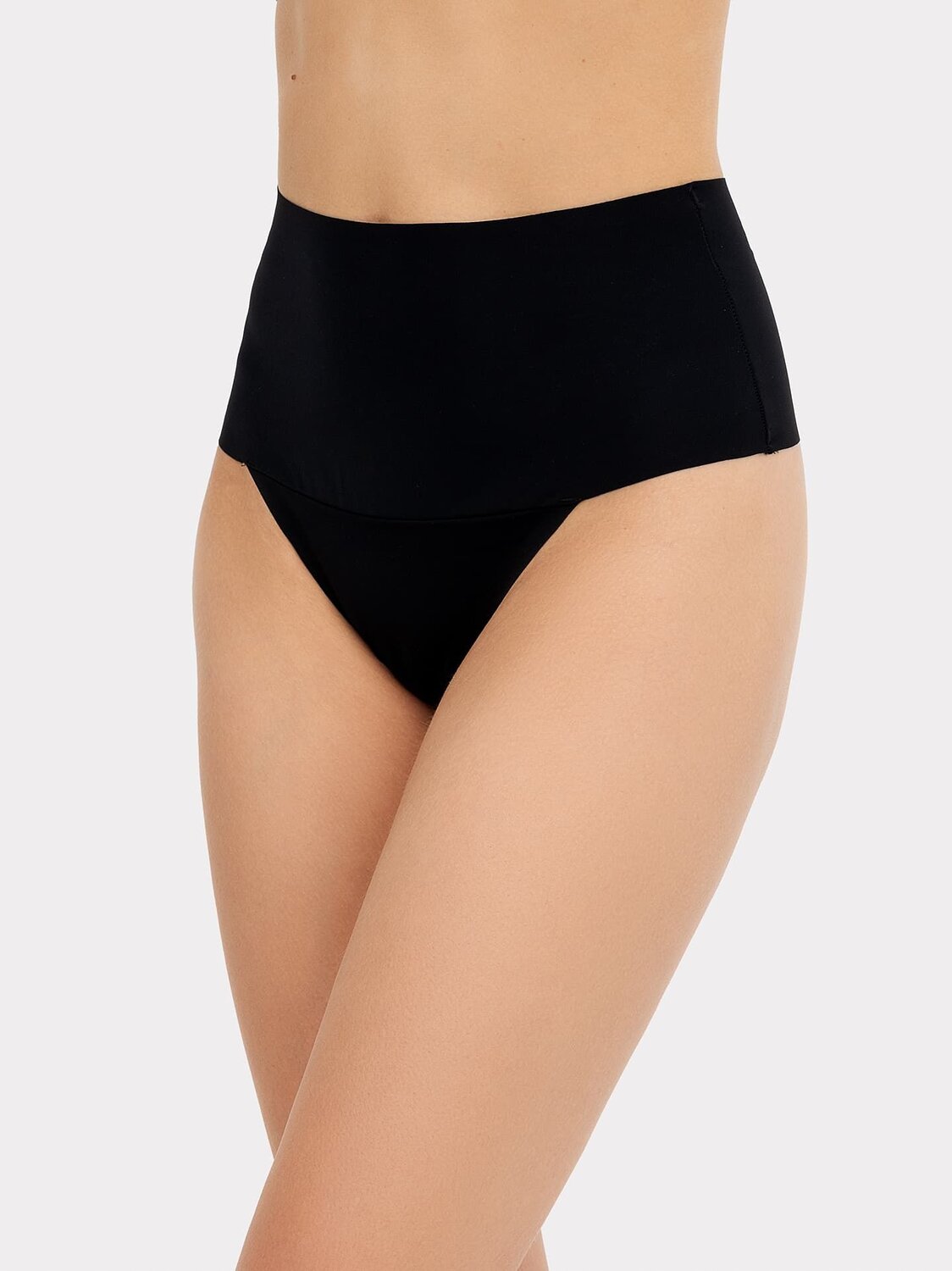 Трусы женские корректирующие, силуэт бразилиано с высокой линией талии и высокой линией ножек. Отрезные горизонтально на уровне линии ножек.Нижняя ластовица выполнена из кулирного полотна и отлетная по переднему краю. Верхние и нижние срезы не обработаны.