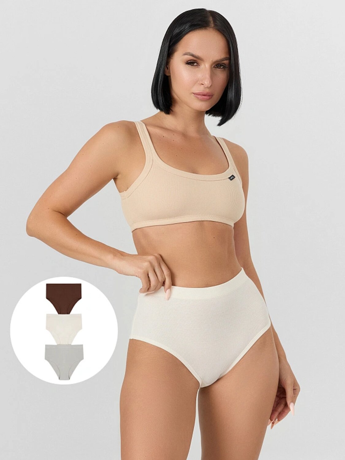 Практичное и выгодное решение для повседневного гардероба. Набор из трех пар трусов с высокой посадкой выполнен из качественной вискозной рибаны, которая обеспечивает мягкость, воздухопроницаемость и комфорт в течение всего дня. Анатомичный крой с плоскими швами и эластичной жаккардовой тесьмой в поясе гарантирует идеальную посадку без давления.