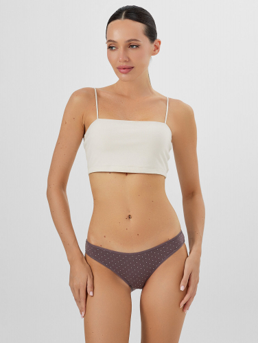 Трусы женские, силуэт слип, из трикотажного кулирного полотна, со средней посадкой, с протяжками по бочкам. Передняя и задняя детали цельные. Подкладка ластовицы из кулирной глади отлетная по переднему срезу. На бочках отверстия.